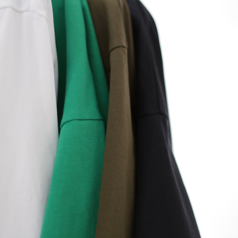 This fabric is made by knitting two strands of tightly twisted 32 count cotton single yarn together in a jersey weave.