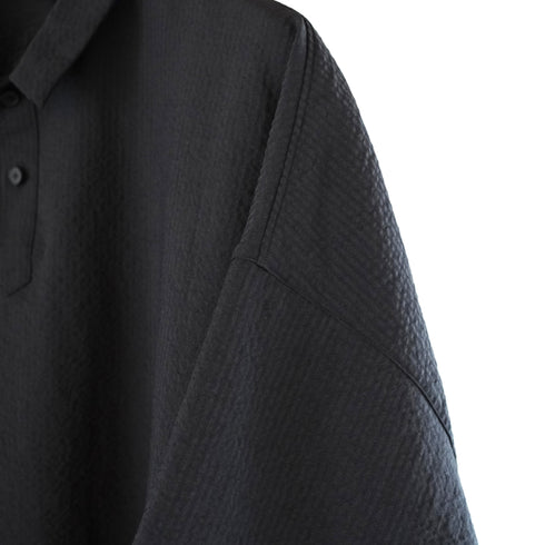 Pullover, short sleeves, one-piece collar, oversized, round hem, side gusset