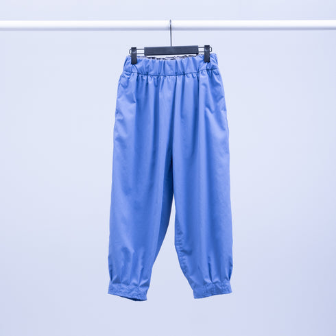 8-pleat hem pants, 9-length, side seam pockets, elastic waistband and drawstring