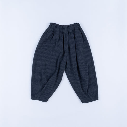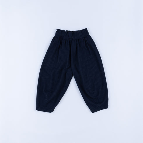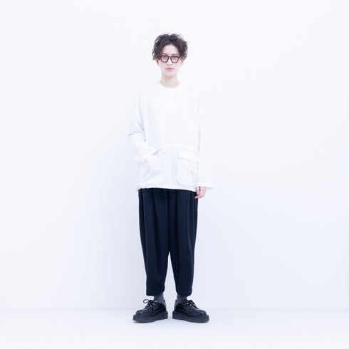 3D curved tapered pants, with a V-shaped hem at the front and a V-shaped hem at the back, no side seams, front and back pockets at the sides, elastic waistband and drawstring