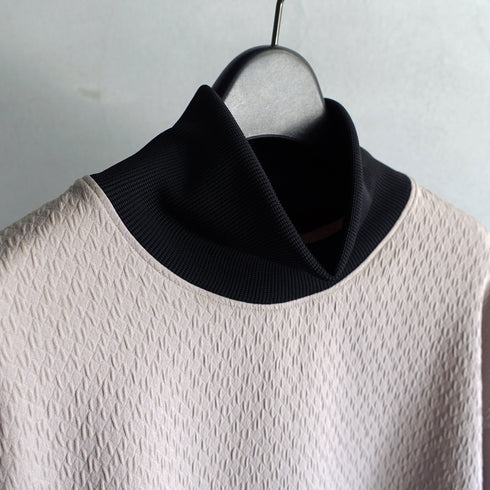 Turtleneck pullover Oversized back flare Cut and sew mixed fabric Ribbed collar and cuffs