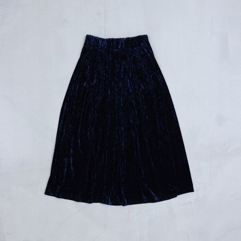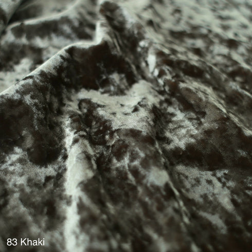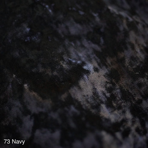 This is a knit velvet fabric made from tricot pile fabric using bright polyester and nylon yarn, dyed chambray and given a distressed finish.