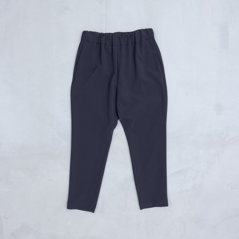 9/10 length, hem slit, side seam pocket, right back flap pocket, elastic waistband and drawstring, no lining