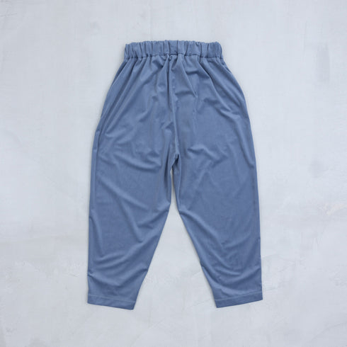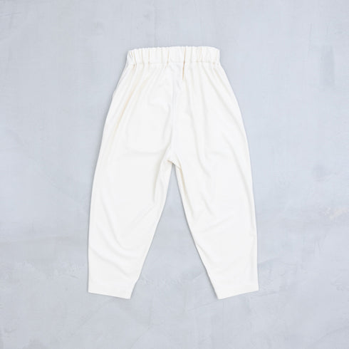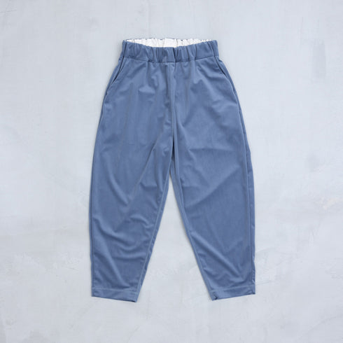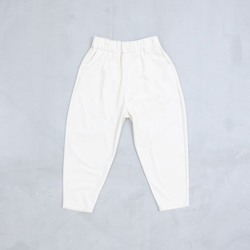 Tapered pants Curved sides Full length Side pockets Elastic and drawstring waist