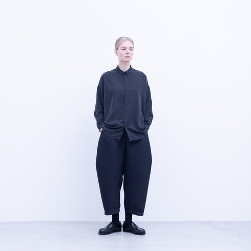 This fabric is woven in a double reverse twill pattern using non-glossy hollow polyester yarn.