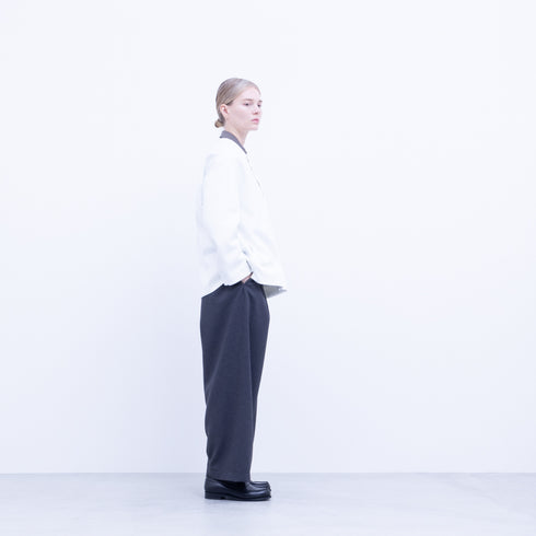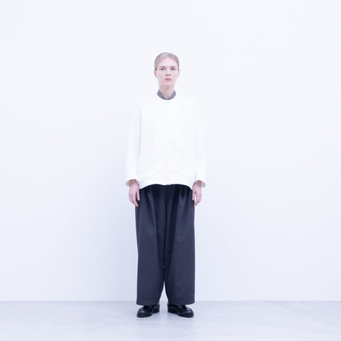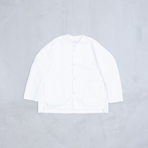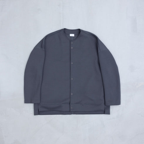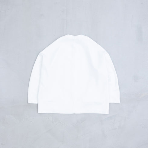 Crew neck cardigan, oversized, center front ring dot, long back hem, side slits, double sleeves, one-piece sleeve, side seam pockets