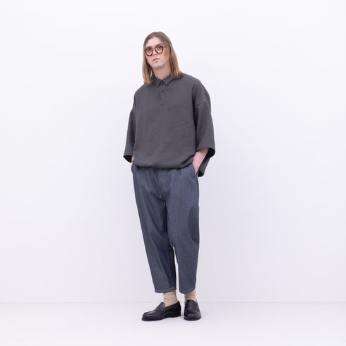 In order to create a denim-like texture, we deliberately finish the fabric at a factory that specializes in denim.