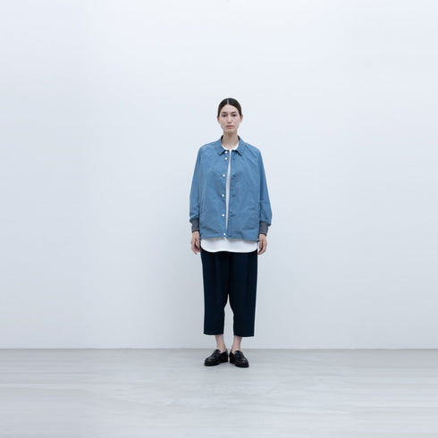 The front surface is made of strong twisted polyester filament yarn with a core-sheath structure and a highly shrinkable polyester core, while the back surface is made of polyester yarn with polyurethane yarn woven together. The front surface looks like ribbing, but it is actually a rare pique-style knit. Unlike ribbing or terry cloth, the fabric is stable and easy to handle. The product has been washed, so sizes may vary depending on the color.