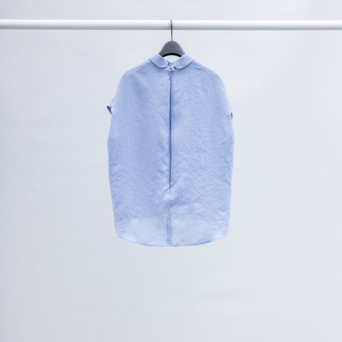 This is a plain weave gauze fabric made from fine slub triacetate. The surface of the triacetate yarn is coated with microfiber to give it a linen-like texture. It is very wrinkle-resistant, thin and light. It is a stress-free material that is easy to handle and changes shape little when washed. It is quick-drying and cool to the touch. 00.White is see-through, but dark colors are not so see-through.