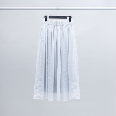 This is a plain weave gauze fabric made from fine slub triacetate. The surface of the triacetate yarn is coated with microfiber to give it a linen-like texture. It is very wrinkle-resistant, thin and light. It is a stress-free material that is easy to handle and changes shape little when washed. It is quick-drying and cool to the touch. 00.White is see-through, but dark colors are not so see-through.