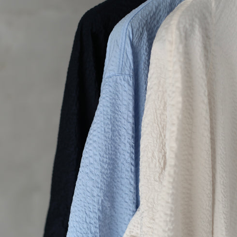 By partially salt-shrinking the fabric, we create unevenness in the fabric itself, making it feel cool and comfortable against the skin.