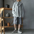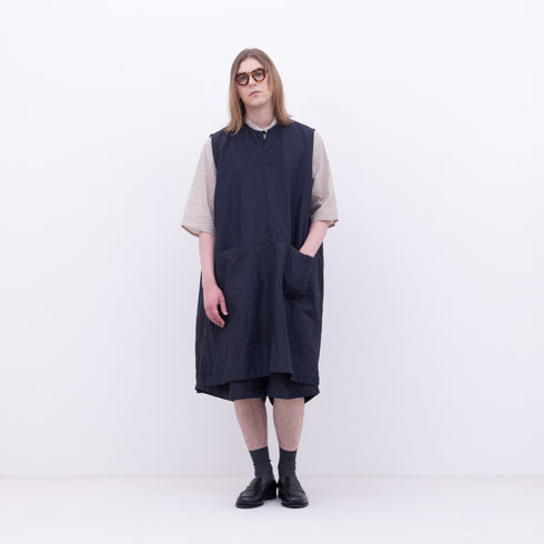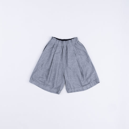 Half pants, side pockets, front and back pockets, double hem, front leg 1 tuck, back leg 1 tuck, elastic waistband and drawstring