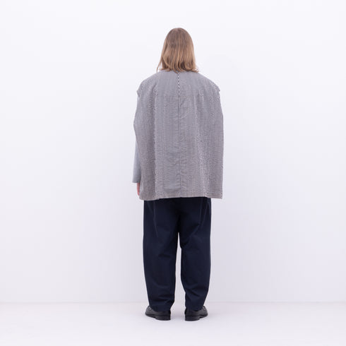 When worn, the sides move towards the center for a compact silhouette. The side slits and back hem are slightly longer.