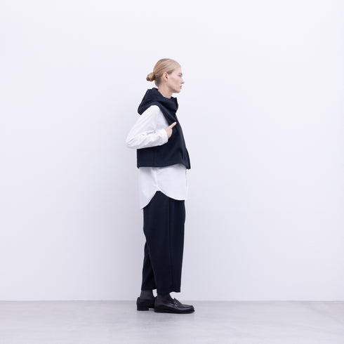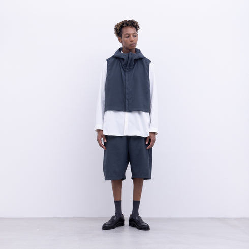 Short hoodie vest with a center front zip and pockets at the front armholes