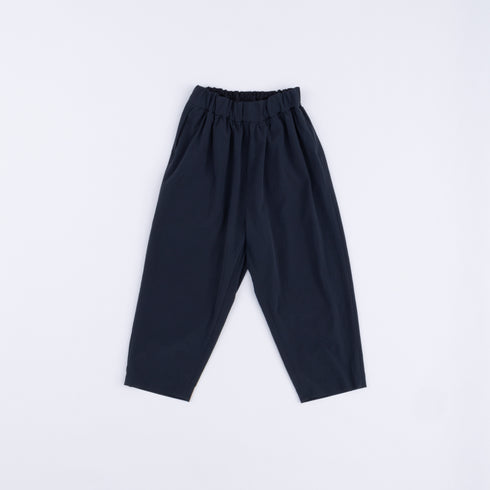 Gathered tapered pants, full length, front and back pockets, elastic waistband and drawstring