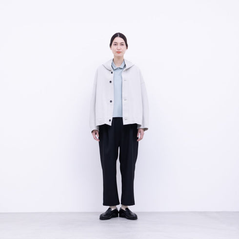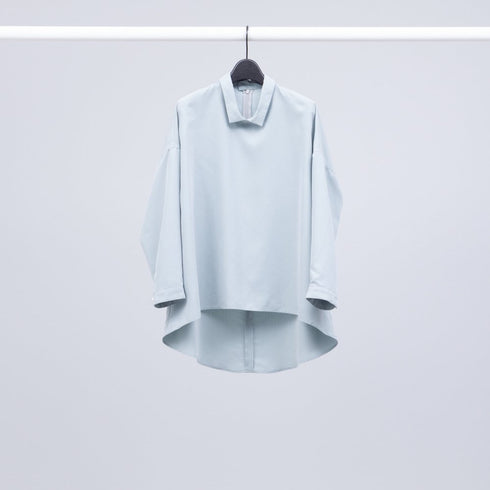 Oversized collared pullover with shirt collar and concealed zipper at center back