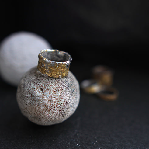 Jona's works are made of silver with gold leaf or black/white finishes, so
