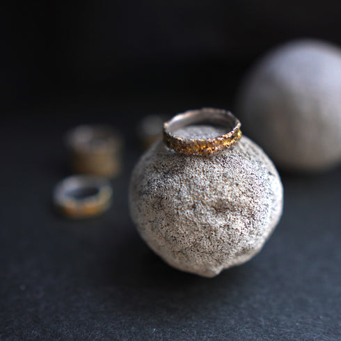 The surface is a ring with irregular irregularities that look like cooled lava.