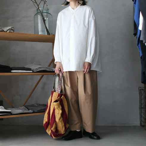 Mao collar shirt, oversized flared back, side seam pockets