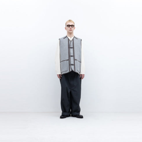 We hope you enjoy the contrast between the tweed herringbone on the front and the virgin lambswool on the back.