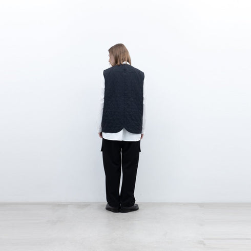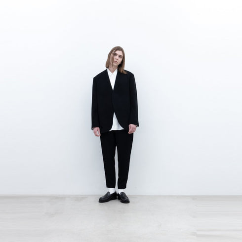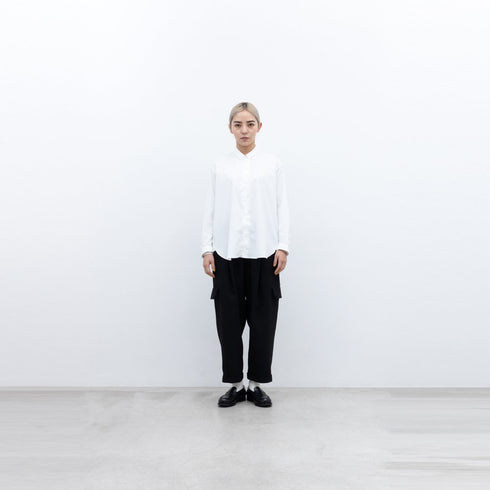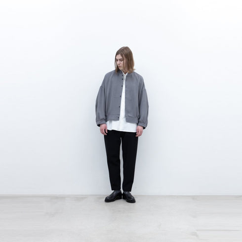 It is thin, light and refreshing, with a thickness equivalent to 60-count single-yarn plain weave in cotton. SY processing has been applied to the surface, giving it a natural texture with fine wrinkles. It is an easy-to-handle fabric that does not wrinkle easily when worn. Full dull yarn is not very see-through, so it is not see-through even in light colors.