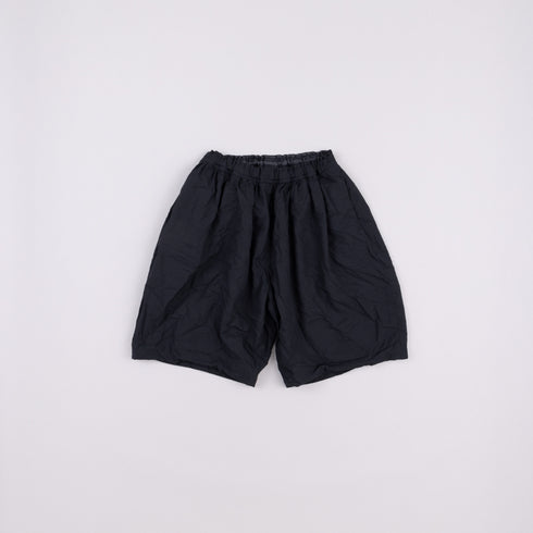 Wide shorts, gathered waist, side seam pockets, back right flap pocket, elastic waistband and drawstring