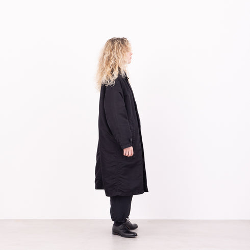 Bal collar coat, raglan sleeves, front placket, box-opening pockets (connected to inner patch pockets)