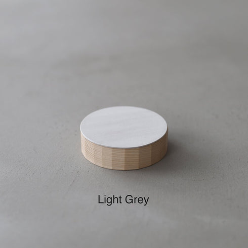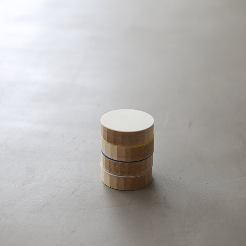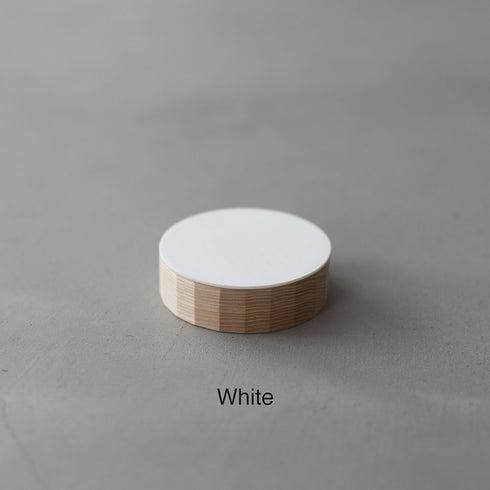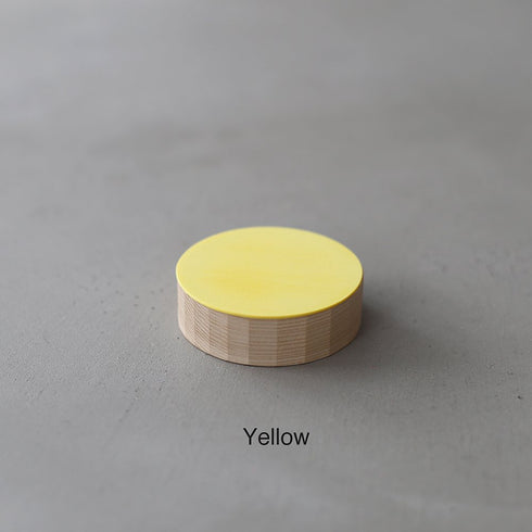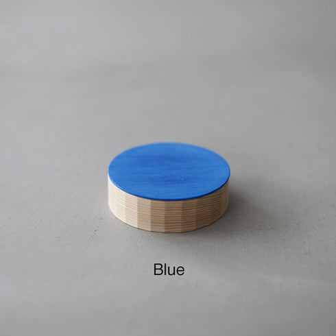 蓋はプラスチック、容器は木を削って作られた作品です。