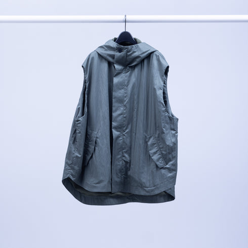 縦皺が入り凹凸が強調され合成繊維ならではの光沢がありながらもユーズド感のある素材です。