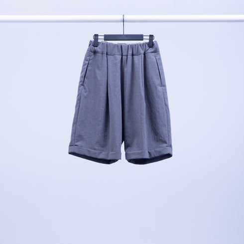 強撚した上に皺加工を施しているため表面に強く皺が見られるのが特徴で肌離れも良く、ほどほどの厚みとストレッチ性がありますので、年間通して着られる素材です。洗っても縮みにくい素材です。生地の最終加工に撥水加工が施されているため少し撥水機能があります。