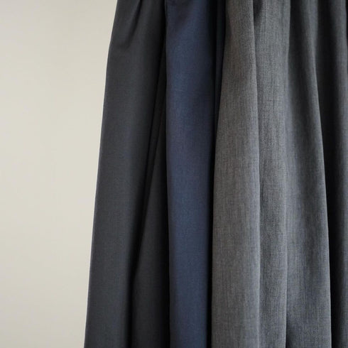 ポリエステルの強撚糸とポリエステルと麻の混紡糸を組み合わせた梳毛のトロのような平織生地です。