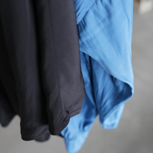 薄い生地ですが透け感もなく、色も深く染まるため深みがあり、皺が入ってもそれが風合いに見える生地です。