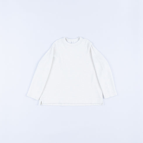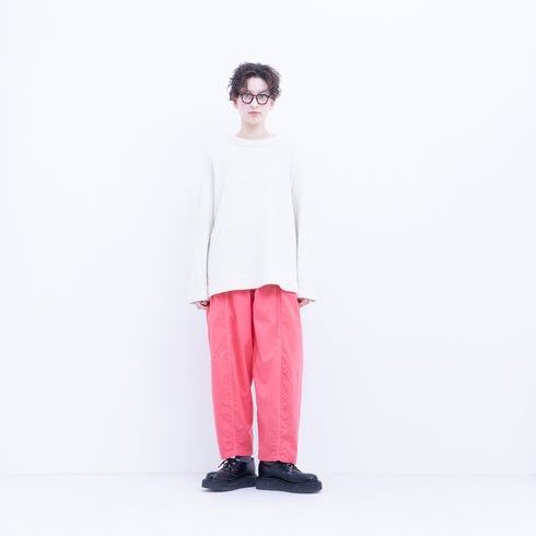 表と裏で異ゲージで編めるクォーターフェイスという編み機で二重編みで編んだニットです。