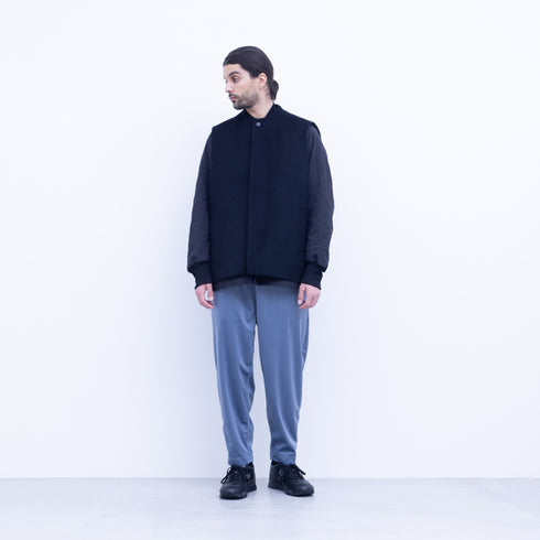 2022AWシーズンより生地にハリコシを出すためと物性の安定化のために芯地をボンディングしております。