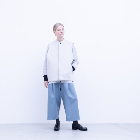 ゆっくりと縮絨をして毛羽を短めに整え、押さえをしっかりとかけて目面の詰まった表情と綺麗な光沢をつくりだしています。