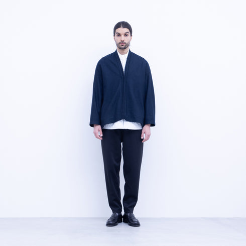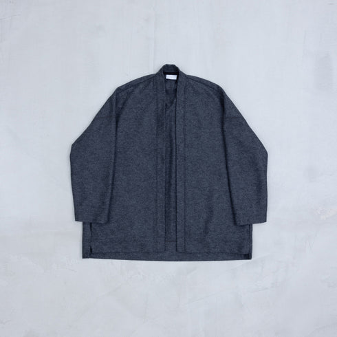 リングウール糸を縮絨しているため通常の縮絨よりもしっかりとウールが絡み合い、ナイロン糸も入っていて高温高圧でしっかりと加工しているためとても強い生地となっています。