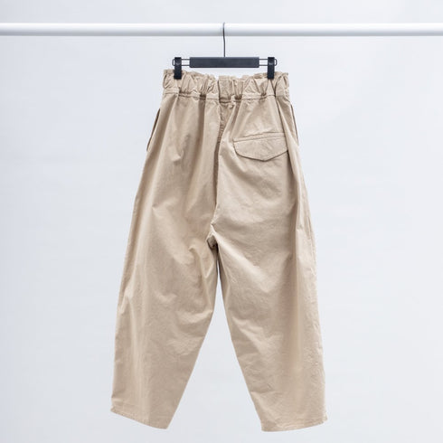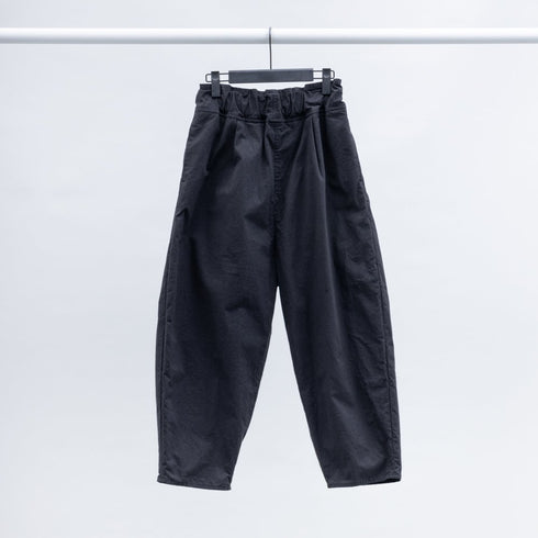 裾近くで強くテーパードしたパンツ