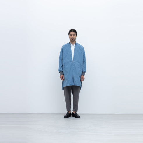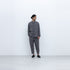 強撚した上に皺加工を施しているため表面に強く皺が見られるのが特徴で肌離れも良く、ほどほどの厚みとストレッチ性がありますので、年間通して着られる素材です。洗っても縮みにくい素材です。生地の最終加工に撥水加工が施されているため少し撥水機能があります。
