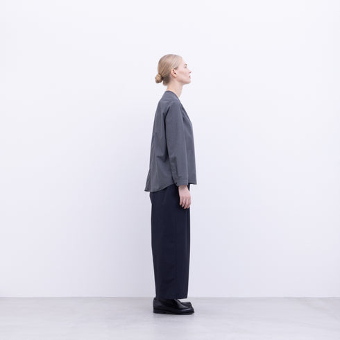 経糸緯糸共に50番単糸のポリエステルとレーヨンの混紡コンパクト糸を使用して平織で織ったブロード生地です。