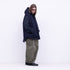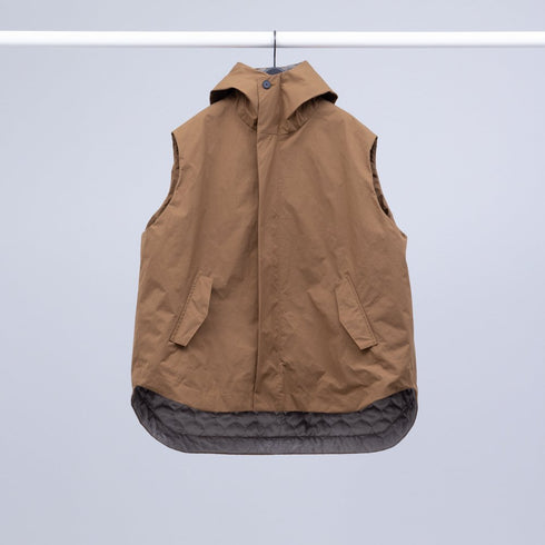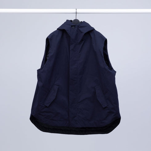 高い形態安定性と軽さを併わせ持ち、経糸緯糸ともに110Dのポリエステルタスラン糸を限りなく超高密に折り上げたツイル生地です。非常に軽量でありながら安定感があり膨らみのあるシルエットが出る生地です。パリパリとした生地感も特徴的でポリエステルの超高密度生地の面白い質感が楽しめます。洗いの際にチョークマークなどは出る可能性はありますが天然繊維などにみられるキオレ等のスジ等は出にくくなっております。