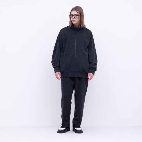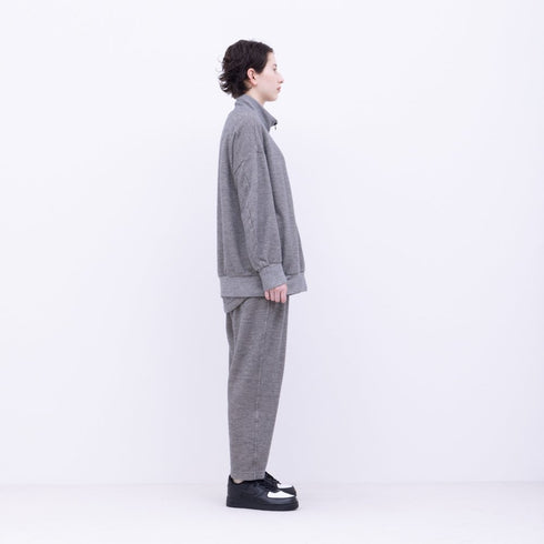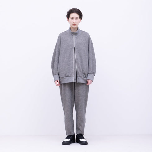 しなやかで弾力のあるオーストラリア産ウールと綺麗な光沢を持つレーヨンをジャガード機を使用して千鳥柄に編んだニット二重編み地です。目が詰まっているのでとても暖かく、洗濯による形状変化も少なくキックバックもしっかりとした安定感の高いバランスの良い生地です。