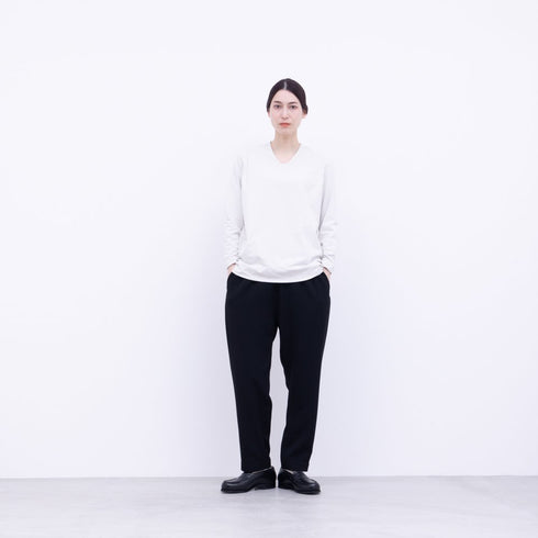 吸水速乾・UVカット・抗ピリングの機能を持った40/-ポリエステル糸を表裏に配した二重編みプレーティング天竺をポリエステル製品染めです。綿のような風合いの糸を使用しているため綿ライクな仕上がりです。