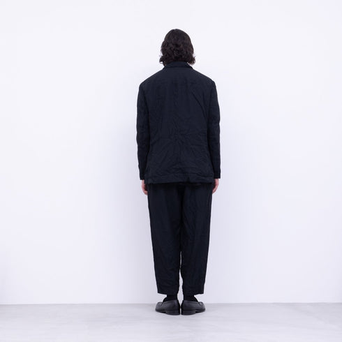 ポリエステルの製品染めは色やサイズ・ロットによって生地の皺感や質感が異なります。また個体差も大きく皺以外にも風合いも大きく異なる場合があります。これはポリエステルの製品染めの特徴ですのでご了承ください。この生地は特に荒めに織っているためサイズも個体差も大きくシワ感や風合いも個体差が大きく出ます。