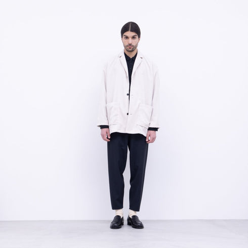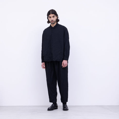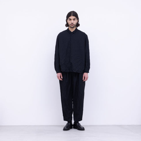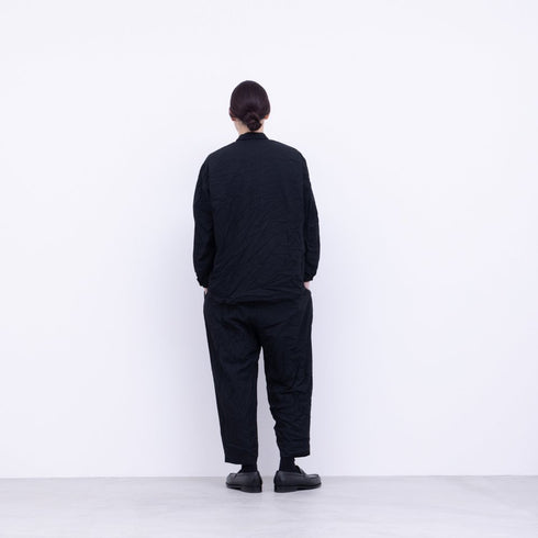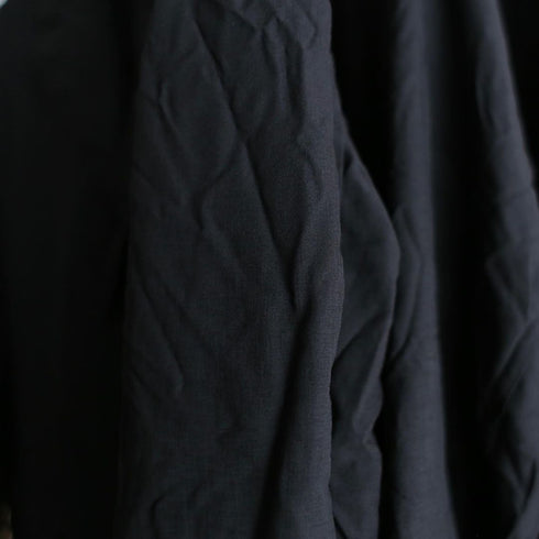 ポリエステルの製品染めは色やサイズ・ロットによって生地の皺感や質感が異なります。また個体差も大きく皺以外にも風合いも大きく異なる場合があります。これはポリエステルの製品染めの特徴ですのでご了承ください。この生地は特に荒めに織っているためサイズも個体差も大きくシワ感や風合いも個体差が大きく出ます。