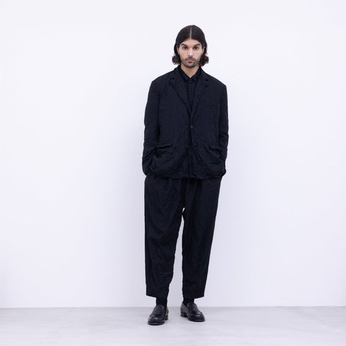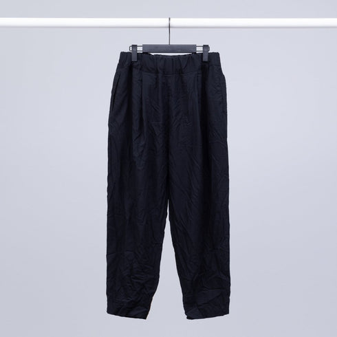 ポリエステルの製品染めは色やサイズ・ロットによって生地の皺感や質感が異なります。また個体差も大きく皺以外にも風合いも大きく異なる場合があります。これはポリエステルの製品染めの特徴ですのでご了承ください。この生地は特に荒めに織っているためサイズも個体差も大きくシワ感や風合いも個体差が大きく出ます。