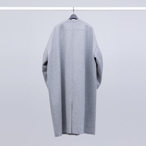 1/10 super100's原料を使用したウール100%のショートビーバー生地です。少し毛足の長いメルトン生地だと思っていただければイメージしやすいかと思います。ゆっくりと縮絨をして毛羽を短めに整え、押さえをしっかりとかけて目面の詰まった表情と綺麗な光沢をつくりだしています。見た目よりも軽い着心地の生地て?す。