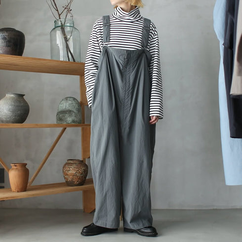 強撚した綿の32番単糸を2本引き揃えて天竺に編み上げた生地です。綿の強撚糸特有の乾いた質感があり適度な厚みと風合いがあります。製品洗いを施しているため、サイズ感に個体差が出る場合があります。