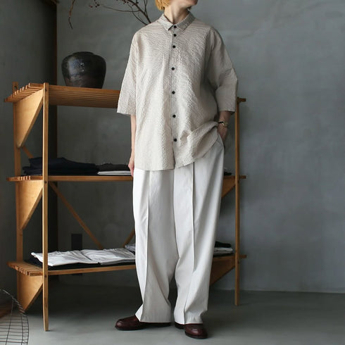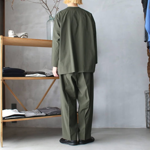 透けにくい糸を高密で織っているため淡色でも透けにくくストレッチもよく効いているため、