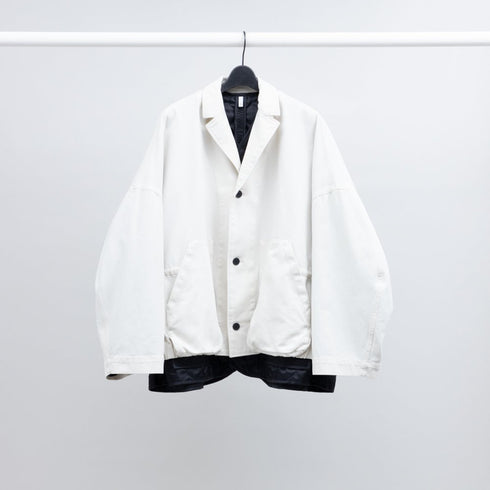 オーガニックコットンの三子糸強撚糸を経緯に打ち込んだ綾織カツラギ生地(ドリル)です。