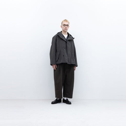 製品染め加工の特徴として染まり方にムラがあること、縫い縮みが大きく出ることがあります。また、一点毎にサイズ感が若干異なります。ナイロンの製品染め独特の風合いをお楽しみください。